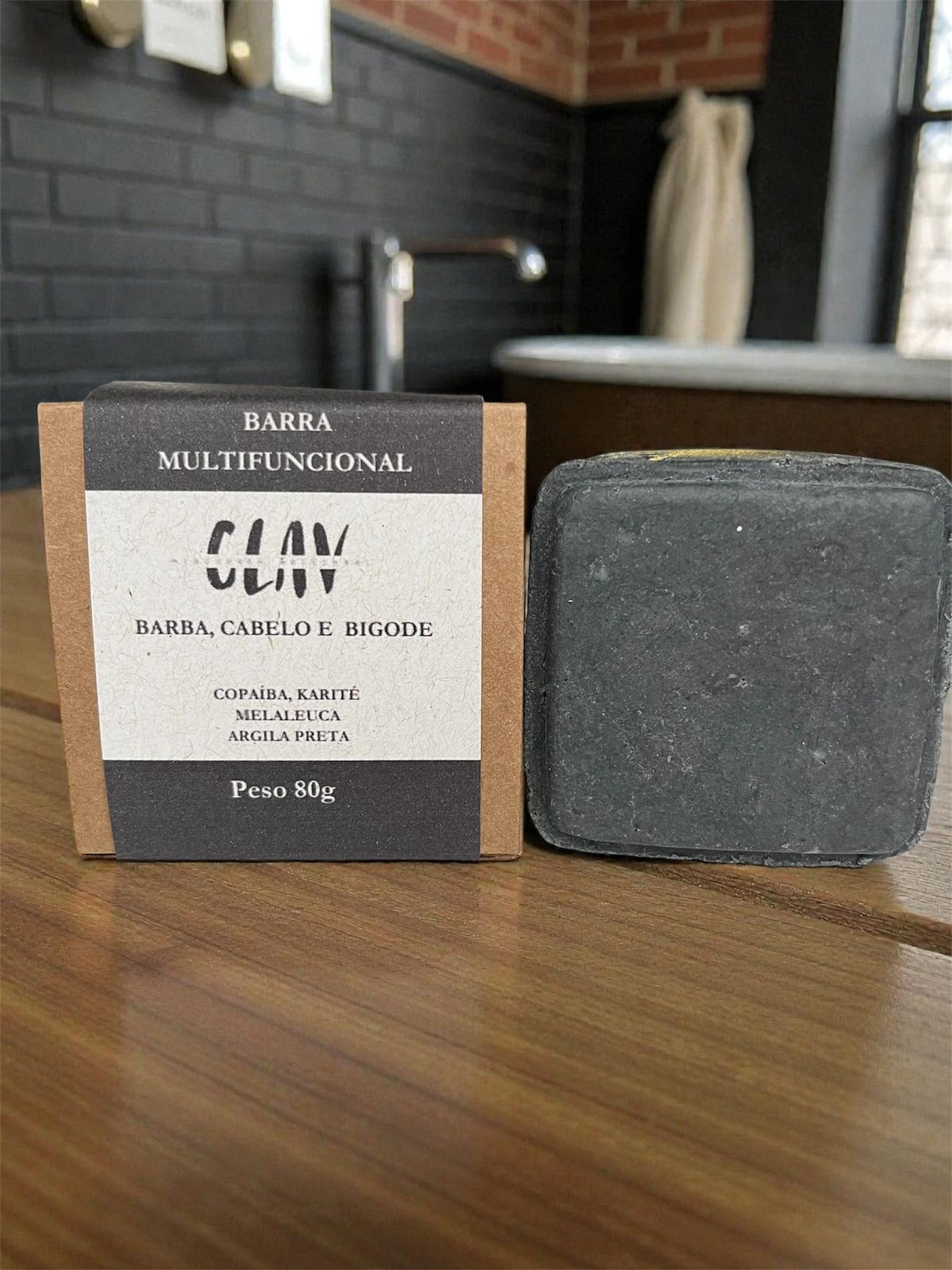 Desenvolvida para o cuidado completo masculino, a Barra Multifuncional Barba, Cabelo e Bigode limpa, purifica e trata em um único produto, oferecendo praticidade sem abrir mão da qualidade e do cuidado natural.